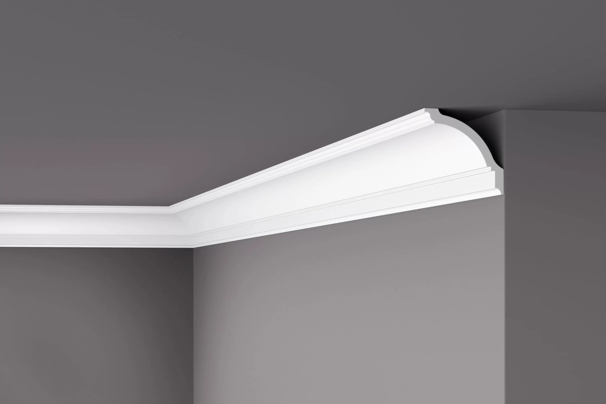 O design moderno da cornija GP NOMASTYL ® apresenta linhas limpas para realçar as formas típicas dos interiores contemporâneos. Um perfil liso é elegante e simplista, ideal para complementar decorações sofisticadas.