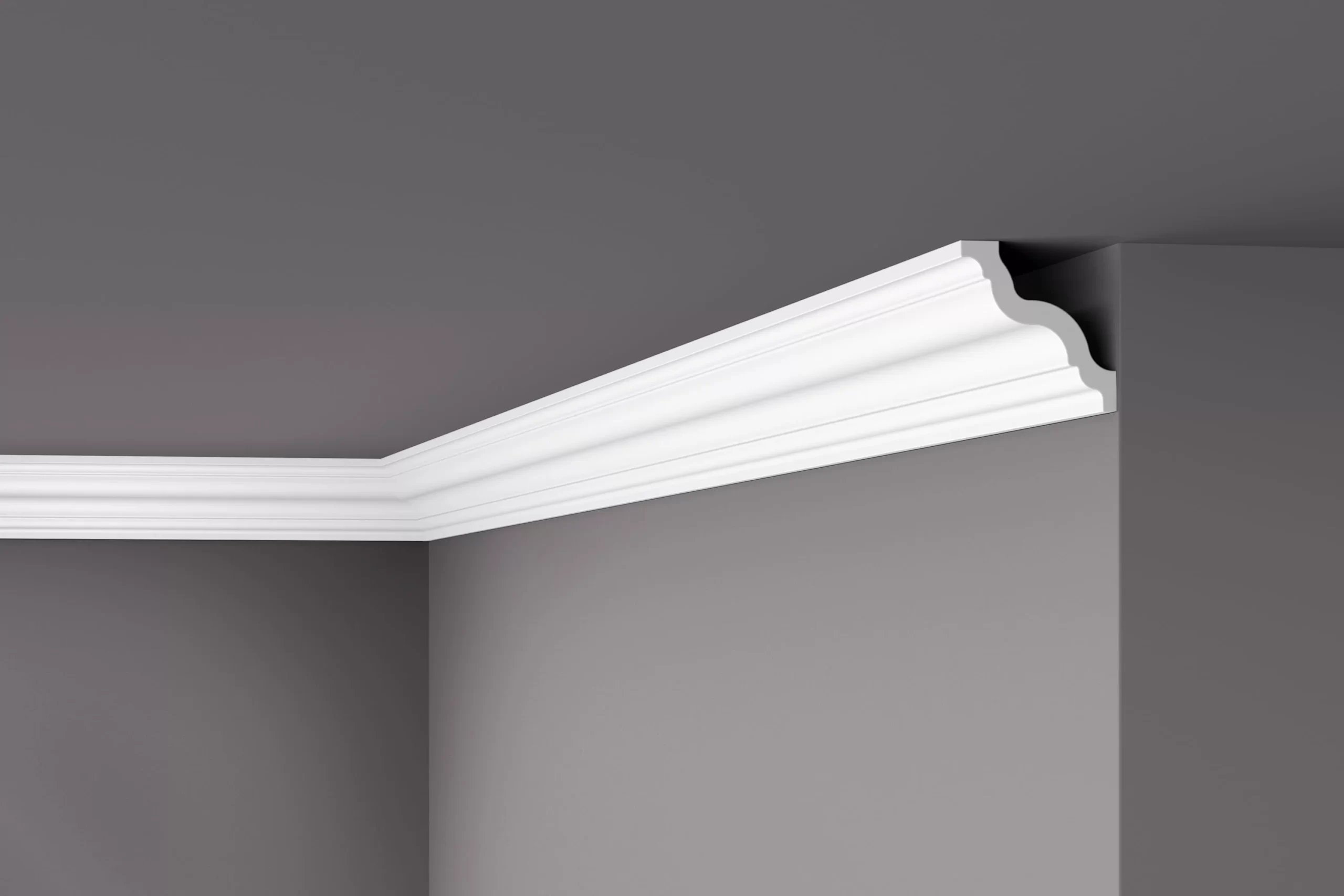 Incorpore uma transição texturizada da parede ao teto com a detalhada abobadilha GR NOMASTYL ® . Um perfil arredondado em forma de ‘S’ cria sombras que adicionam interesse a uma sala. A combinação de linhas limpas e formato curvo proporciona uma peça de destaque sutil e sofisticada.
